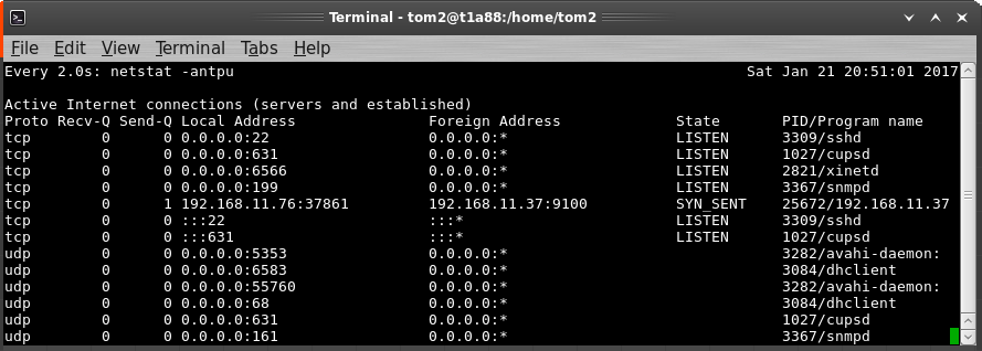 watch --interval=10 netstat -antpu