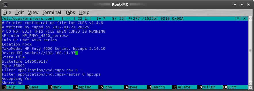/etc/cups/printers.conf