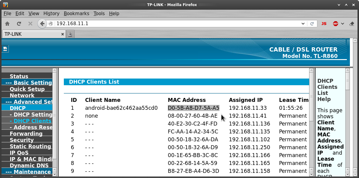 3. Check the client list and find your device and copy the MAC of the device.