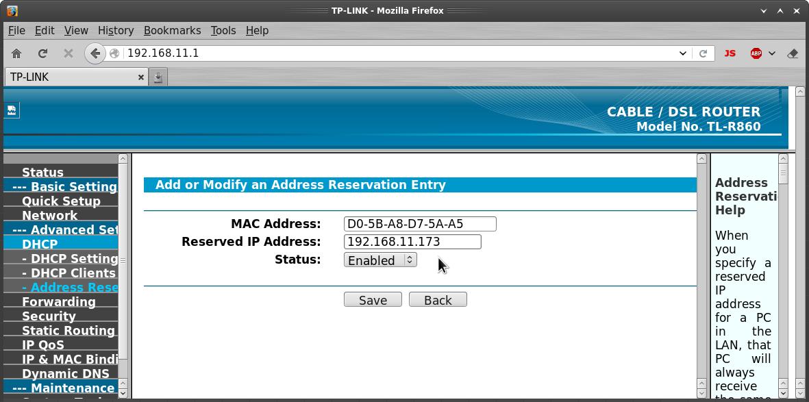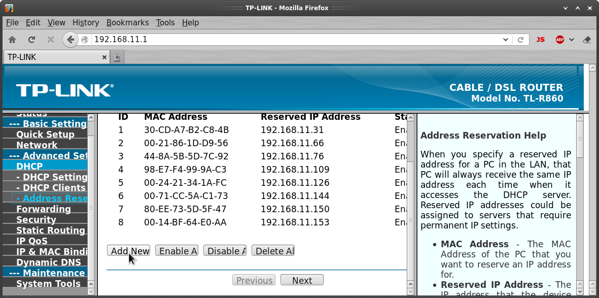 Here's the way that's done on my TL-R860. Most routers are similar, but the terminology may be different.